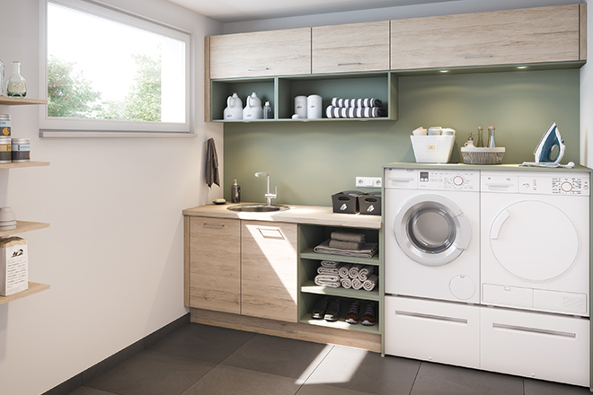 Pour obtenir une parfaite harmonie et créer une continuité visuelle, assortissez les meubles de votre buanderie à ceux de votre cuisine. Cela permettra de créer un joli ensemble et de conserver le même style dans votre intérieur. Mais vous pouvez évidemment choisir une couleur et/ou une finition toute spécifique pour cette pièce selon votre imagination