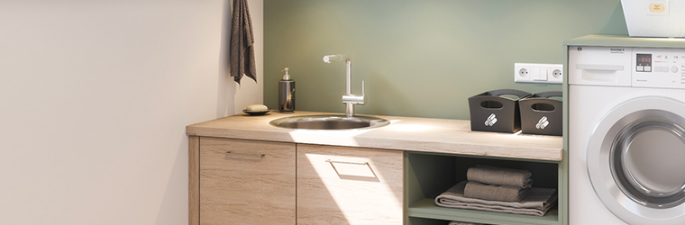 Pour rincer un vêtement avant de le mettre en machine, laver à la main une pièce délicate ou encore essorer une chaussette coincée dans le tambour de la machine à laver, rien de plus pratique que d’avoir un lavabo et un robinet à portée de main. Cet évier vous permettra de gagner du temps et vous évitera ainsi les aller-retour entre la cuisine et la buanderie.