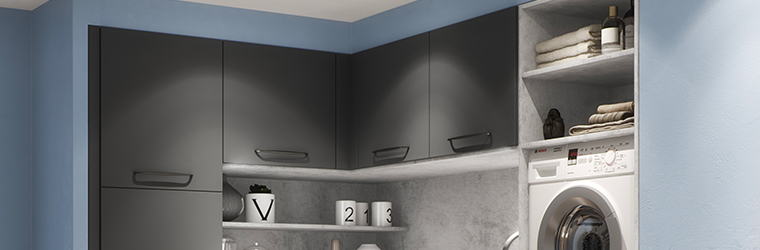 Aménagez votre buanderie avec des étagères et des meubles hauts