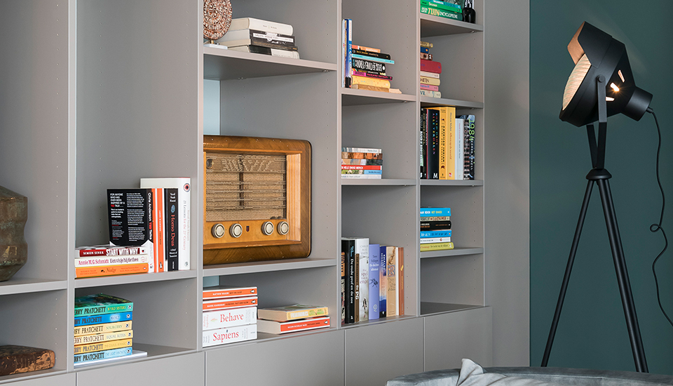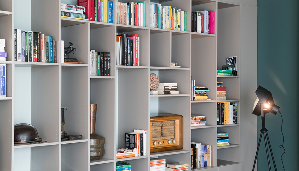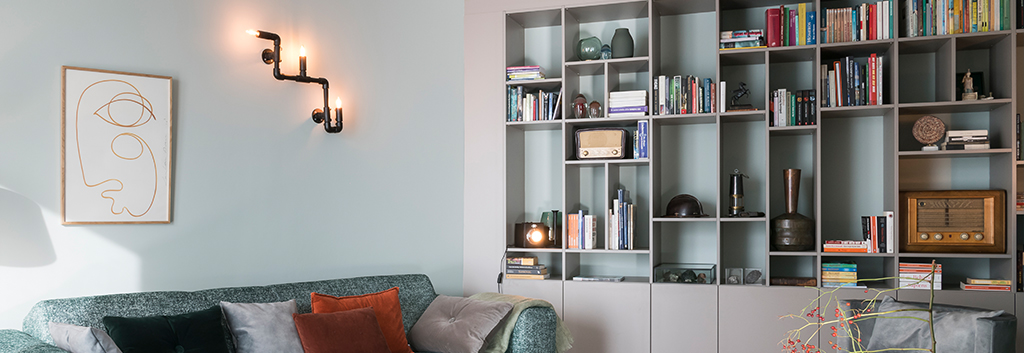 Stéphanie et Simon ont maintenant une bibliothèque èggo sur mesure qui s’intègre à la perfection dans l’ambiance industrielle du salon, malgré des angles hors norme. Avec les meubles èggo, tout est possible, quelle que soit la configuration de la pièce. Désormais, la bibliothèque est LA pièce maitresse du salon. Chaque livre, chaque objet de valeur, comme le casque de mineur et des minéraux du grand-père de Simon, trônent fièrement dans ce bel espace de rangement.