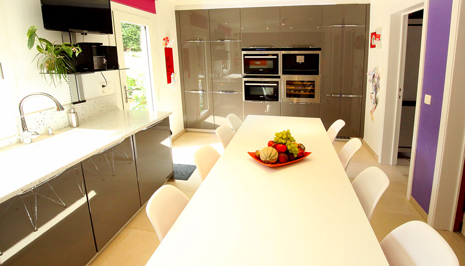 Nous avons rencontré un gestionnaire de projet très à l’écoute. Il a eu l’idée géniale d’abattre un mur pour réaliser une grande cuisine esthétique, pratique, vivante et conviviale ! Le rapport avec ce gestionnaire était excellent. Et, nous ne sommes pas des clients faciles…
