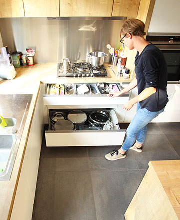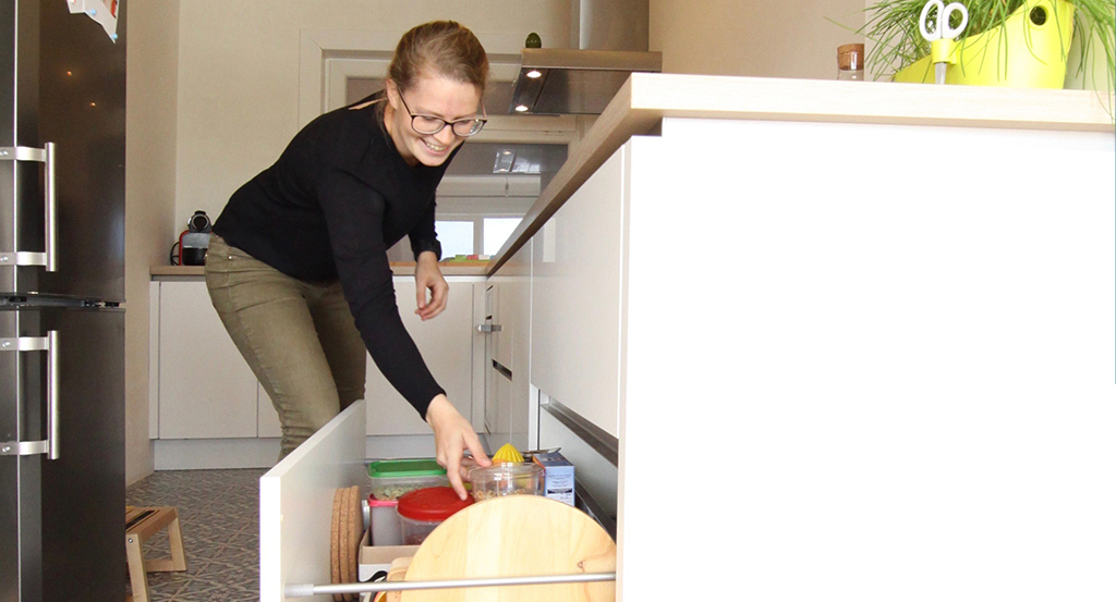 Nous désirions une cuisine blanche et nous avions beaucoup de possibilités car le blanc peut être mat, brillant, blanc cassé, blanc alpin… Aussi, pour des raisons ergonomiques, nous souhaitions autant de rangements que possible. Notre espace cuisine étant très petit, c’était un véritable casse-tête ! Heureusement, avec l’aide de notre conseillère, nous sommes parvenus à faire les bons choix. Nos souhaits sont devenus réalité : nous avons une cuisine ergonomique au design parfait !