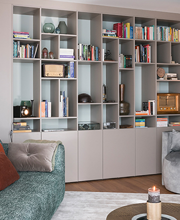 Ce meuble est très bien pensé : il permet de séparer le salon de la salle à manger.